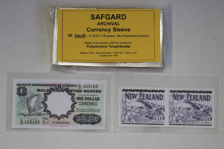 SAFGARD MYLAR BANKNOTE OR STAMP SLEEVE / HOLDER - ONE PACKET OF 50 -130 x 72 mm
