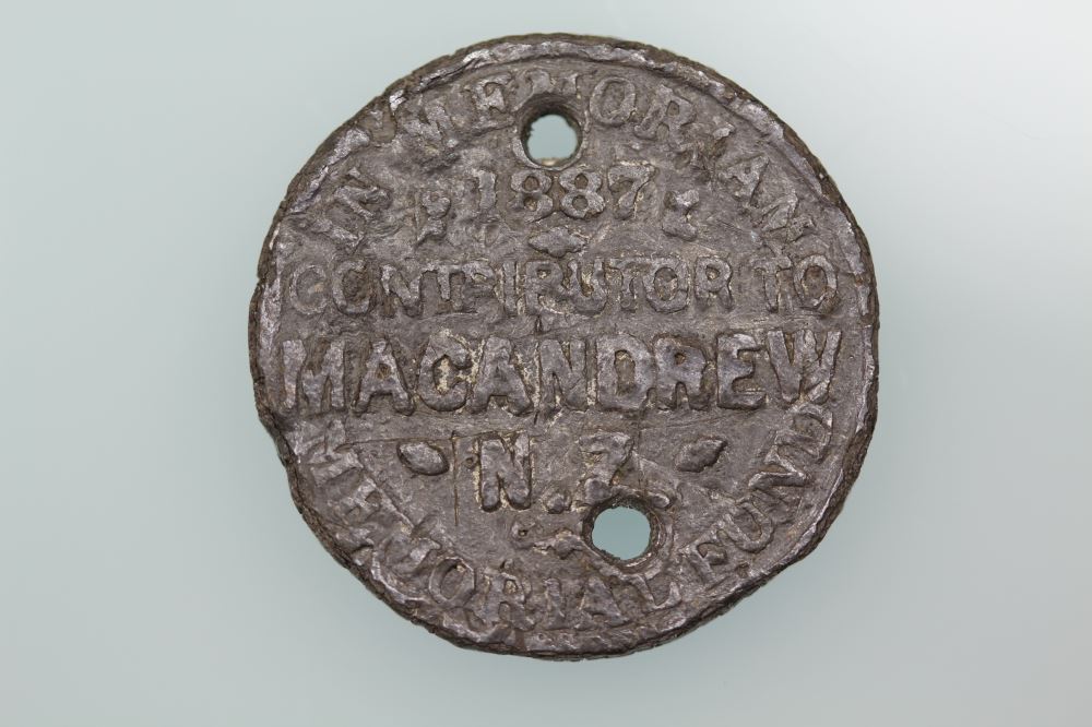 M1887/9 J. MACANDREW MEMORAIL FUND 1887 MEDAL White Metal.