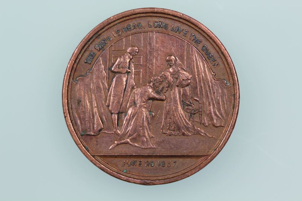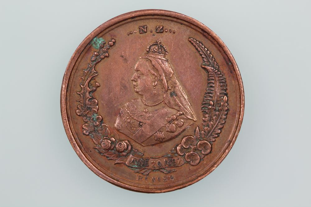 M1897/2 QUEEN VICTORIA DIAMOND JUBILEE MEDAL COPPERMorel: 1897/2Obverse: THE KING IS DEAD LONG LIVE THE QUEEN / JUNE 20 1837. S KOHNReverse: JUNE 20. 1837 …N.Z… / RD NO 82Diameter 23.5 mm, copperMorel Rarity Rating: R2