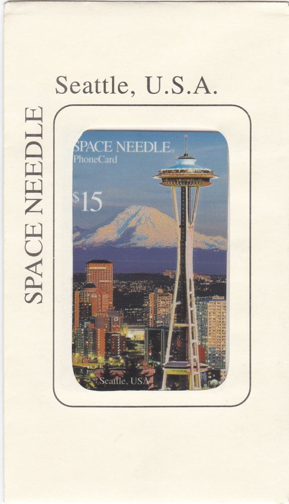 USA SEATTLE SPACE NEEDLE $15.00 PHONECARD IN PRESENTATION ENVELOPEEnvelope unopened so assume the card is still in mint unused condition