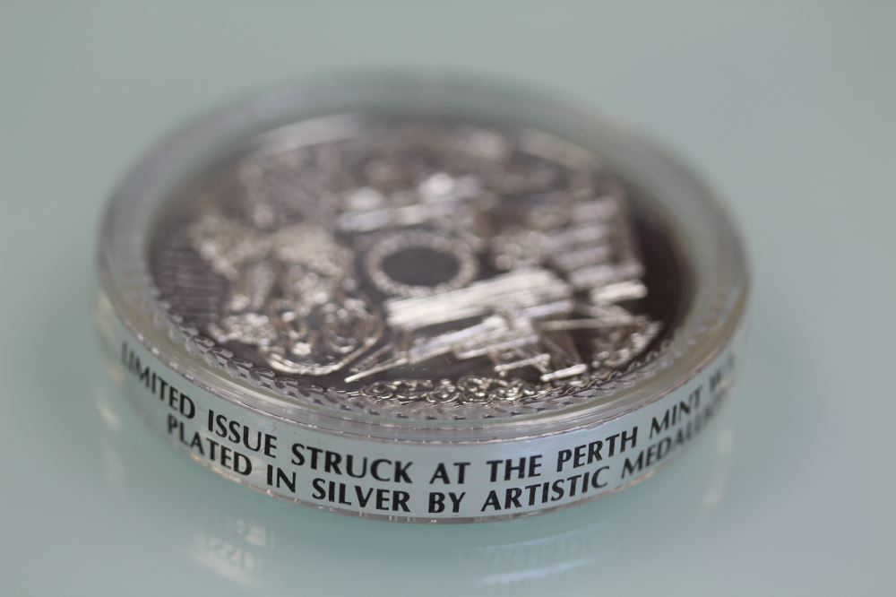Australia WESTERN AUSTRALIA SOUVENIR COINObverse: WESTERN AUSTRALIA SOUVENIR COINReverse: Industrial ScenesDiameter 44 mm, silver plated, still unopened in original capsule