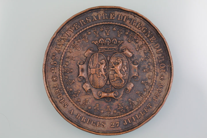 Reverse: 25 ME ANNIVERSAIRE DU REGNE DU ROI / FETES A BRUGES 27 JULLET 1856