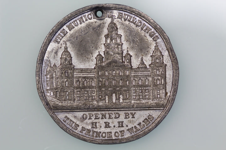 Reverse: THE MUNICIPAL BUILDINGS / OPENED BY / H R H / THE PRINCE OF WALES