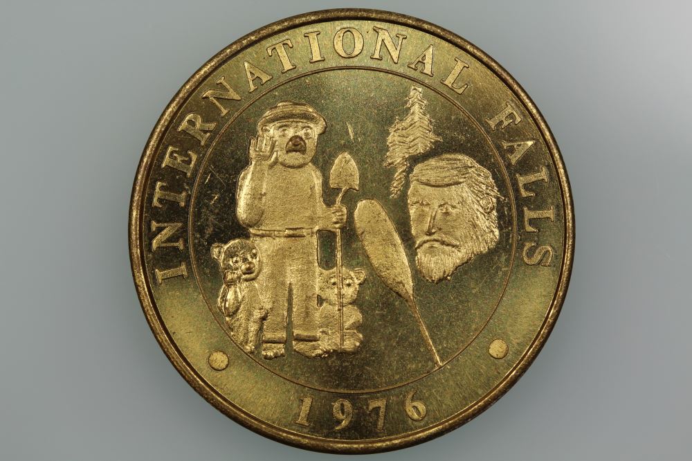 USA 1776-1976 BI-CENTENNIAL INTERNATIONAL FALLS MEDAL #1144Obverse: INTERNATIONAL FALLS 1976Reverse: UNITED STATES BI-CENTENNIAL / 1151 / 1776 – 1976 Diameter 34 mm in brass