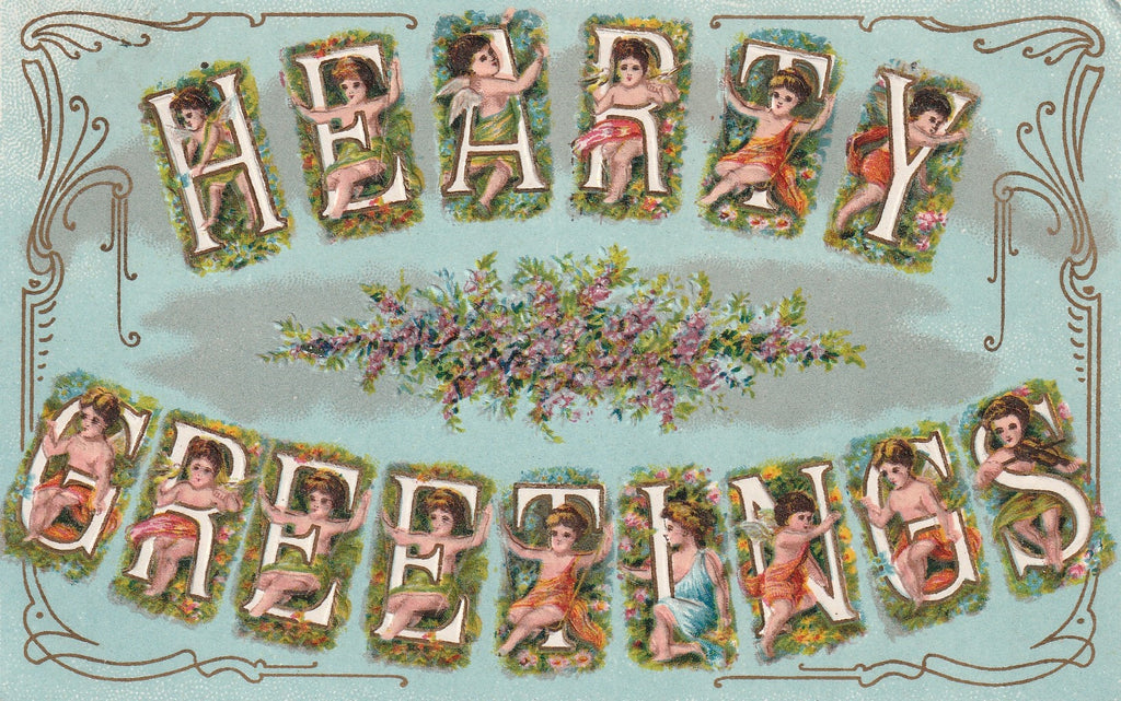 A JOYOUS BIRTHDAY GREETINGS EMBOSSSED FLOWERS POSTCARD